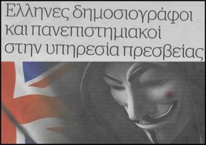 Στα έγγραφα που δημοσίευσαν οι Anonymous εμφανίζεται μια ομάδα επιστημόνων και δημοσιογράφων να αποτελούν την Ομάδα Ελλάδας. Η εν λόγω ομάδα φαίνεται να παίρνει εντολές από τον συντονιστή στη βρετανική πρεσβεία. Σύμφωνα με τα χακαρισμένα έγγραφα, επικεφαλής της είναι η δημοσιογράφος Δέσποινα Αφεντούλη (πρόκειται για την Ινώ Αφεντούλη), η οποία υπηρετεί στο γραφείο Δημοσίων Σχέσεων του ΝΑΤΟ. Το ίδρυμα ΕΛΙΑΜΕΠ φαίνεται να είναι στην επιρροή της οργάνωσης, με τους επιστήμονες Θάνο Ντόκο, Ιωάννη Αρμακόλα και Γιώργο Τζογόπουλο να έχουν άμεση επαφή ως μέλη της Ομάδας Ελλάδας.