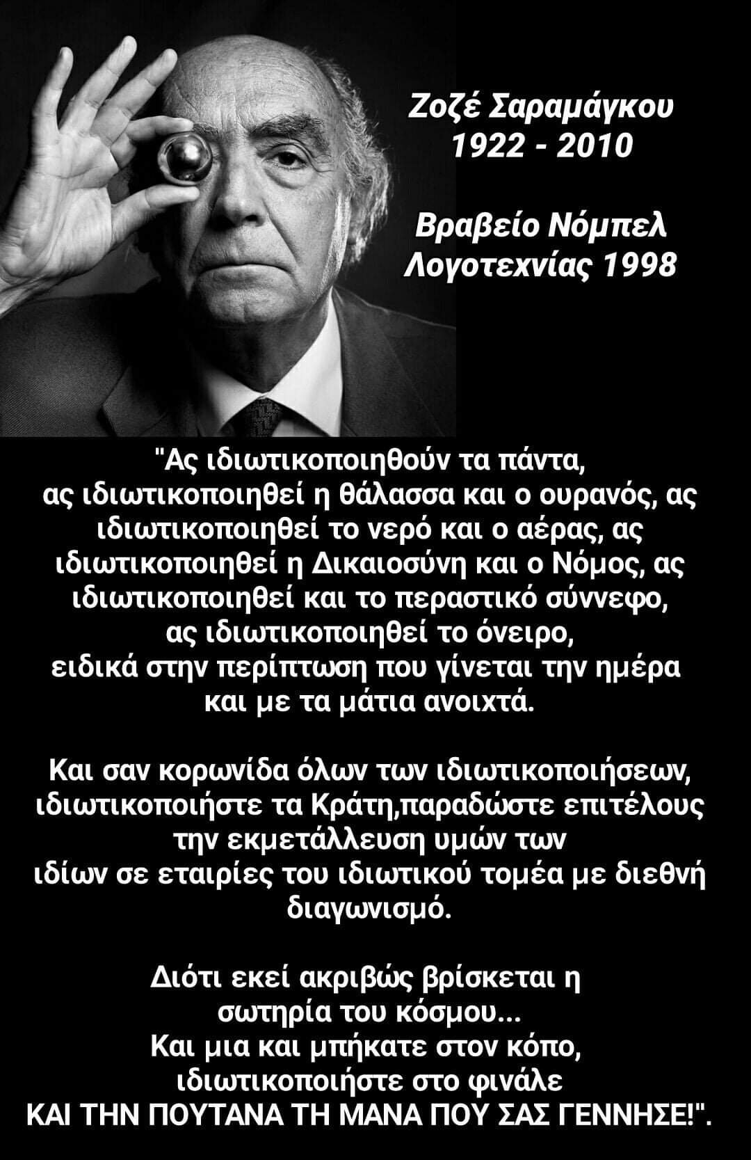Με την ίδια αλαζονεία και αναίδεια που παρουσιάζουν ως κοσμογονία , την κοσμοχαλασιά… Με την ίδια αναίδεια που παρουσιάζουν ως ανάπτυξη την εξαθλίωση…