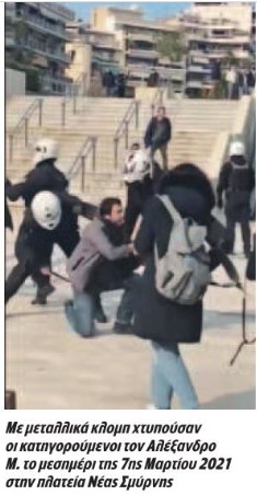 «Μια ψεύτικη κραυγή». Ετσι ερμηνεύτηκαν χθες τα παρατεταμένα ουρλιαχτά του Αλέξανδρου Μ. που ηχούσαν στην πλατεία της Νέας Σμύρνης μέρα μεσημέρι στις 7 Μαρτίου 2021, όταν άντρες της ομάδας ΔΙΑΣ τον χτυπούσαν με πτυσσόμενη μεταλλική ράβδο σε καίρια σημεία του σώματός του.