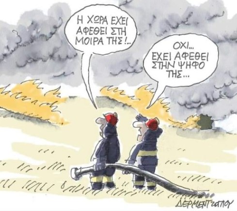 Η Ελλάδα φλέγεται… Απ΄ άκρη σ΄ άκρη, πύρινος όλεθρος, στάχτες, αποκαίδια, ανείπωτη περιβαντολλογική καταστροφή, χαμένες ζωές, καμένο βιός, ερείπια μόχθου και βιοπάλης… Και η μακάβρια λίστα νεκρών από τις πυρκαγιές ολοένα και παίρνει μεγαλύτερες εφιαλτικές διαστάσεις… Θρηνούσαμε εννιά θύματα, έρχονται τώρα να προστεθούν 18 κολασμένοι/ες αυτού του κόσμου … από εκείνες τις ψυχές που τις ονομάζουν “παράτυποι μετανάστες”…