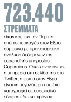 Η καταστροφή έχει ήδη ξεπεράσει το θλιβερό ρεκόρ του 2021 που είχαν καεί 1.307.440 στρέμματα, συμπληρώνει η εφημερίδα.