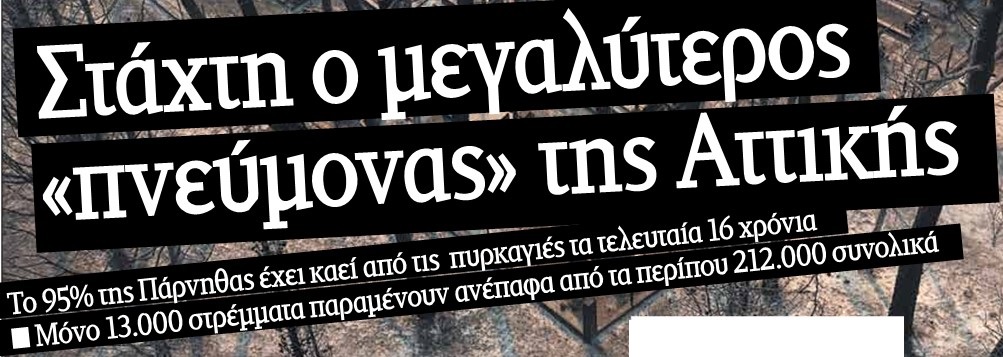 Αν και είναι ακόμη νωρίς για απολογισμούς, αυτοί είναι μερικοί από τους πρώτους αριθμούς των πυρκαγιών του Αυγούστου, όπως δημοσιεύονται σήμερα στα “Νέα”.