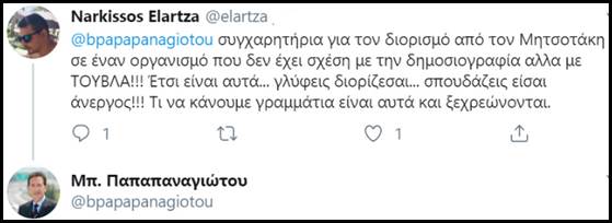 Ο κρατικοδίαιτος Μπ. Παπαπαναγιώτου, (διορίστηκε Σύμβουλος Επικοινωνίας στον Διευθύνοντα Σύμβουλο της ΚΤΥΠ ΑΕ (Κτιριακές Υποδομές) Αθανάσιο Γιάνναρη), -θα του αποδίδαμε και αργομισθία, αλλά είναι κάτι που δεν μπορεί να το αποδείξουμε-, είναι κάποιος τύπος που επί κυβέρνησης ΣΥΡΙΖΑ όταν άκουγε τη λέξη «μετακλητός» δε σήκωνε μύγα στο σπαθί του. Ενδεικτικά από το Twitter, επί λέξει, μερικές δικές του φράσεις, όπως τις παραθέτει σε δημοσίευμα του στην “ΕφΣυν” ο Δημήτρης Κανελλόπουλος
