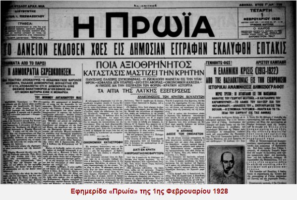 Εφημερίδα “Η Πρωία”, 2 Φεβρουαρίου 1928