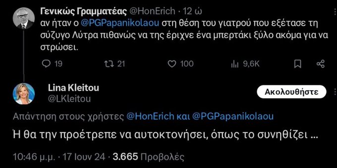 Τα δεξιά κατακάθια του διαδικτύου, όταν δεν προσπαθούν να μιμηθούν τον Κούγια και να εφεύρουν δικαιολογίες για την κακουργηματική συμπεριφορά του Απόστολου Λύτρα με θύμα την γυναίκα του, προσπαθούν να αποδώσουν σε αριστερούς πολίτες υποτιθέμενες αντικοινωνικές συμπεριφορές. Και εντάξει να το κάνει κάποιος/α ανώνυμα. Το να το κάνει αυτό η Λίνα Κλείτου: Ενα “μισάνθρωπο φασιστοειδές ημιναζίδι”, που προκαλεί, και μάλιστα στοχεύοντας στον αγωνιστή γιατρό Πάνο Παπανικολάου, πάει πολύ.