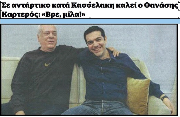 Ο Καρτερός κάνει ό,τι κάνει γνωρίζοντας πως αυτό που κάνει οι περισσότεροι θα το χρεώσουν στον Αλέξη Τσίπρα – ενδεχομένως μάλιστα χωρίς να έχει την παραμικρή ανάμειξη ο ίδιος ο Τσίπρας.