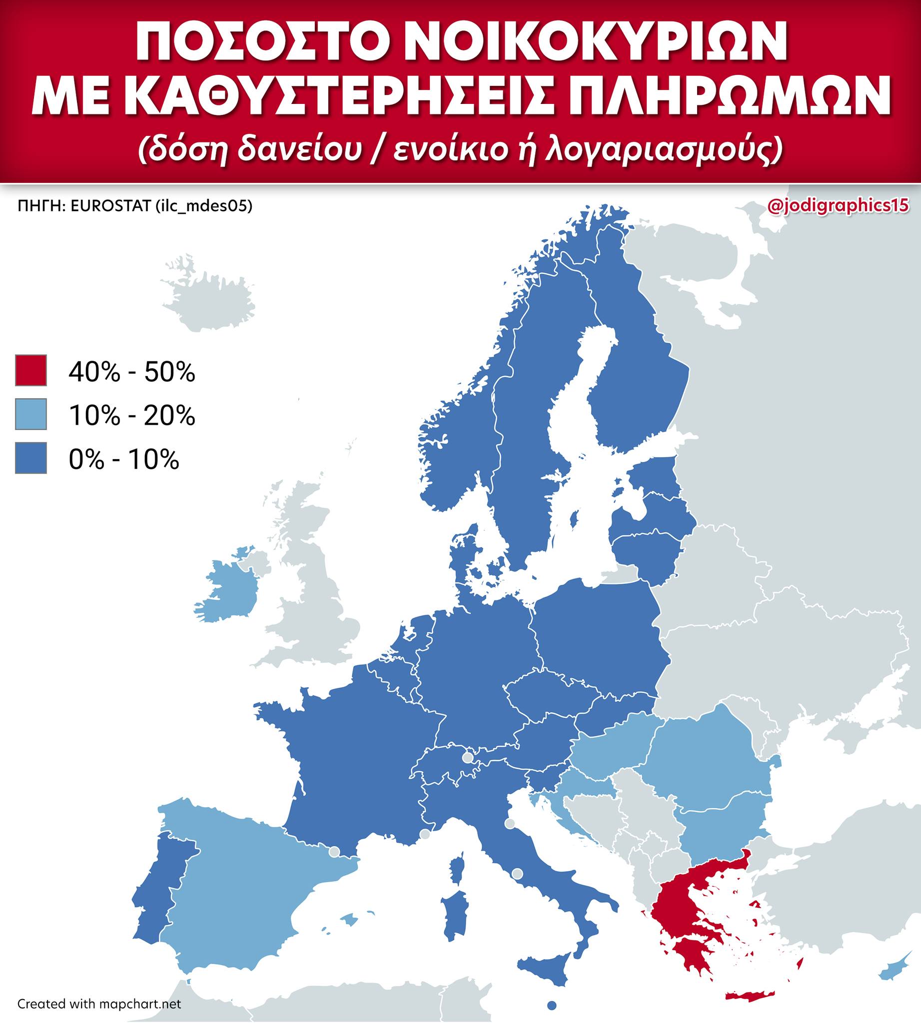 Σχεδόν τα μισά νοικοκυριά στην Ελλάδα (ποσοστό 47,3%) εμφανίζουν καθυστερήσεις στις πληρωμές λογαριασμών (δόσεων δανείου / ενοίκιο ή λογαριασμοί κοινής ωφελείας)