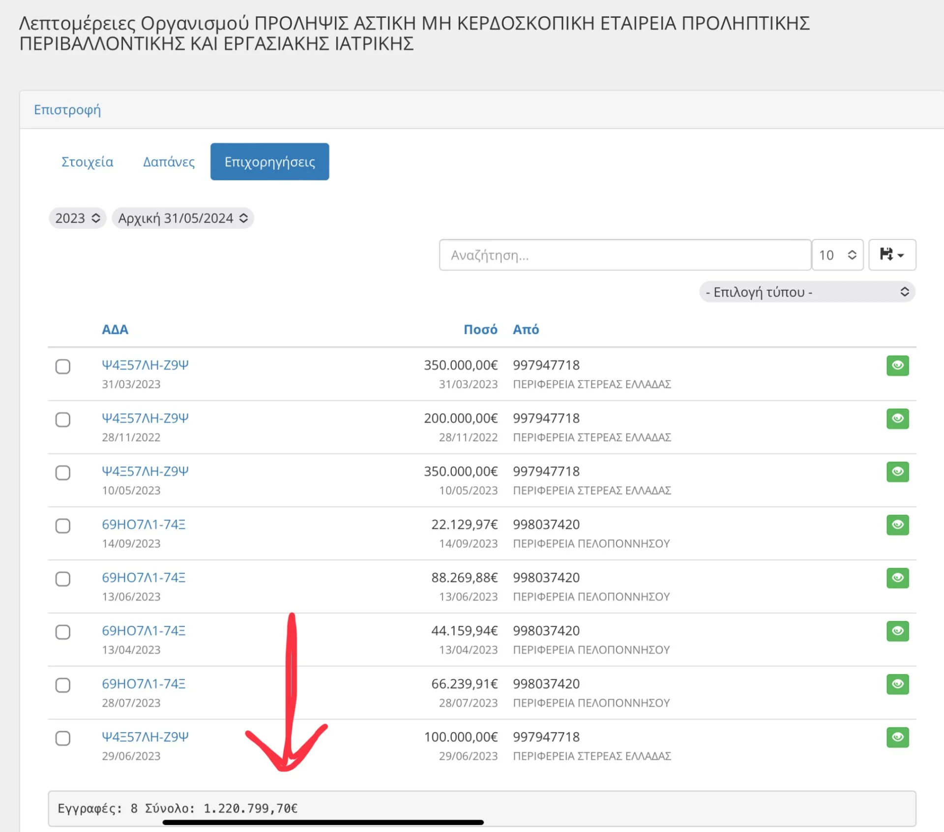 ➤2024 900.000 (έως τώρα) Περιφέρεια Στερεάς Ελλάδας (ΦΑΝΗΣ Χ. ΣΠΑΝΟΣ) (τελευταίο ένταλμα: Ιούλιος 2024)