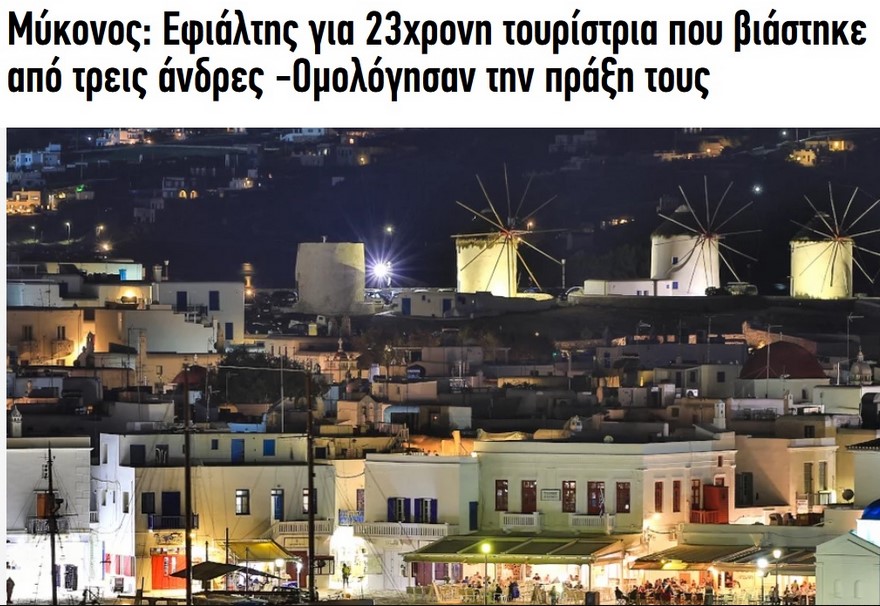 Την προσοχή σας. Από το πρωί σε σχεδόν όλες τις ειδησεογραφικές ιστοσελίδες “τρεις Πακιστανοί που συνελήφθησαν για τον βιασμό νεαρής τουρίστριας, 21 ετών, από τη Νότια Αφρική, στη Μύκονο, στις 30 Ιουνίου αφέθηκαν ελεύθεροι χωρίς να τους επιβληθούν περιοριστικοί όροι”.