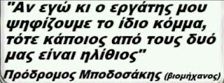 Οσο για τους μεροκαματιάρηδες και τους απόμαχους της δουλειάς που εξακολουθούν να ψηφίζουν δεξιά και “τις παραφυάδες αυτής” τους αφιερώνουμε την παρακάτω ρήση: