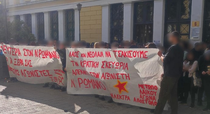 Το σόου που έδωσαν οι άντρες “αντιτρομοκρατικής” περιλάμβανε δυο δεκάδες απ΄αυτούς, να έχουν κυκλώσει οδηγώντας τον Ρωμανό στην ανακρίτρια -αλήθεια θυμάστε πώς προσήχθησαν για να δώσουν απολογία κάτι εγκληματίες σαν τον Λιγνάδη, τον Μίχο και τον Μπάμπης Αναγνωστόπουλος, που σκότωσε την γυναίκα του- ενώ έριξαν κάποια χημικά στους συγκεντρωμένους.