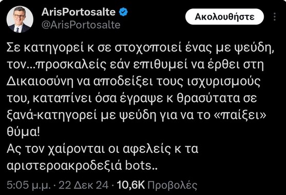 Αλήθεια κ. Πορτοσάλτε, τους εικονιζόμενους πρόκειται να τους καλέσετε στο δικαστήριο να λογοδοτήσουν για τα όσα ισχυρίζονται σε βάρος σου;