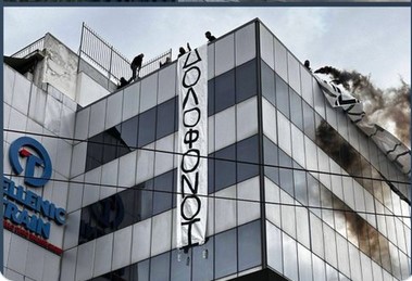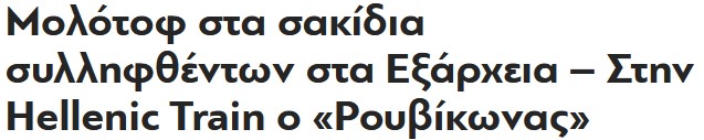 Ο Ρουβίκωνας ξετυλίγει το πανό στη ταράτσα της Hellenic Train.