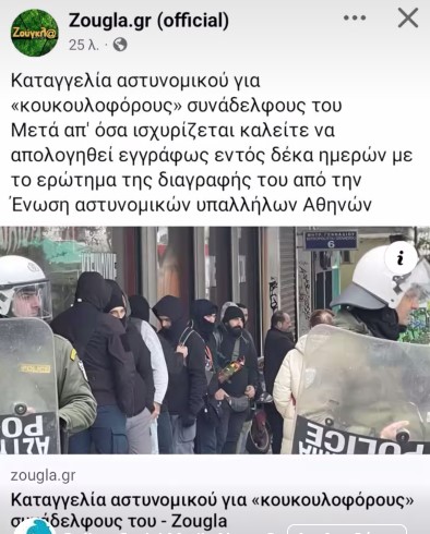 “Ενας μεγάλος αριθμός από τους κουκουλοφόρους είναι ασφαλίτες. Δεν το λέω για να γελάσουμε, το λέω σαν γεγονός.