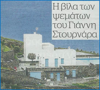 Επίσης, όπως και να το κάνουμε δεν είναι και λίγο να μαθαίνεις ότι το ζεύγος Στουρνάρα δεν δήλωνε τα πραγματικά τετραγωνικά της βίλας της στην Σύρο (αντί για 520 δηλώνει 372 στην ΔΕΗ) για να μην πληρώνουν φόρους και δημοτικά τέλη που τους αναλογούν, ενώ το 2011 και το 20012 δεν πλήρωσαν ούτε το χαράτσι που τους αναλογούσε.