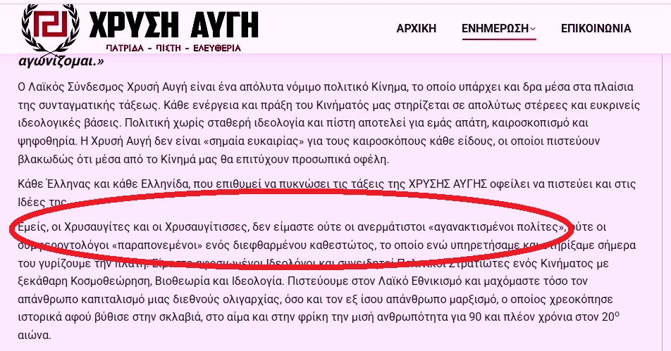 Βεβαίως εκ των υστέρων μπορεί να λέει καθένας ό,τι θέλει. Για κακή τύχη, όμως, όσων επιμένουν στη διαστρέβλωση της ιστορίας, διαθέτουμε τα ντοκουμέντα της ίδιας της ναζιστικής οργάνωσης που όχι μόνο διαψεύδουν την παρουσία της στο πλευρό των «αγανακτισμένων», αλλά επιβεβαιώνουν ότι έκανε ολόκληρη εκστρατεία εναντίον τους.