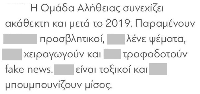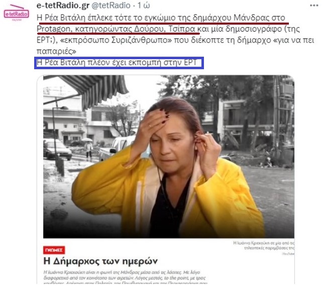 Μια κάποια δημοσιογράφος της σειράς ονόματι Ρέα Βιτάλη, που αρθρογραφεί στο Protagon, στο αποσμητικό στην τουαλέτα της κυβέρνησης, όπως χαρακτηρίσαμε αυτή την ιστοσελίδα δίπλα στους πέντε fake αρθρογράφους, που διαθέτει αυτό το σάιτ. Τα τρολ, δηλαδή, υποκαθιστούν τους κανονικούς δημοσιογράφους με κείμενα «αγνώστου πατρότητας» αλλά εμφανέστατης στόχευσης, όπως ακριβώς τα “παιδιά” της Ομάδας Αλήθειας. Και εδώ έχουν γίνει γνωστά μόνο δυο ονόματα, των επικεφαλής της Ο.Α. (Σημερινό δημοσίευμα ισχυρίζεται ότι στην εν λόγο ομάδα βρίσκονται και οι Johnny Hoston, και Zukhov)