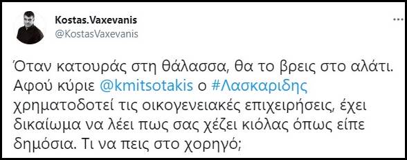 Τέτοιες μέρες του 2021 είχε προκληθεί σάλος όταν ήρθαν στην δημοσιότητα δηλώσεις του εφοπλιστή Πάνου Λασκαρίδη, που έκανε απευθυνόμενος στον τότε στον υπουργό Ναυτιλίας Γιάννη Πλακιωτάκη. Ο πλουτοκράτης αυτός ανέφερε ότι οι πλοιοκτήτες δεν έχουν ανάγκη την κυβέρνηση, ούτε τον πρωθυπουργό. «Οι εφοπλιστές δεν χρειάζονται την κυβέρνηση, το υπουργείο, την ΙΜΟ (International Maritime Organisation) και τον πρωθυπουργό», είχε δηλώσει, συμπληρώνοντας μάλιστα ότι «έχουν χεσμένο τον πρωθυπουργό, γι’ αυτούς δεν έχει καμία χρησιμότητα».