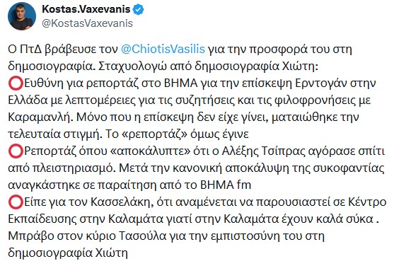 Εναυσμα μας, για να σημειώσουμε όλα τα παραπάνω το παρακάτω ποστάρισμα του Κώστα Βαξεβάνη: