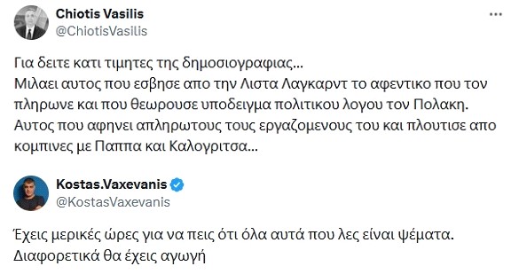 Επανερχόμαστε τώρα στο θέμα με την βράβευση των δημοσιογράφων Βασίλη Χιώτη και Παναγιώτη Λαμψία από τον ΠτΔ αφού εξακολουθεί να απασχολεί την δημοσιότητα (Ο Κώστας Βαξεβάνης δημοσιεύει άρθρο του που το τιτλοφορεί “Πες μου ποιον βραβεύεις να σου πω ποιος είσαι“, ενώ αντέδρασε ακαριαία, απειλώντας με αγωγή, όταν ο διευθυντής του ρ/σ Σκάι άφησε υπονοούμενα για την ηθική συγκρότηση του εκδότη του Documento). Ας ρίξουμε, λοιπόν, ακόμα δυο πινελιές. Κι’ αυτή η επιθυμία μας δημιουργήθηκε από τον τίτλο που επέλεξε στο κείμενο του ο Κ. Βαξεβάνης.