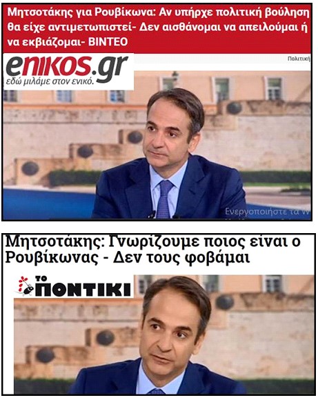 Ο αρχηγός της Νέας Δημοκρατίας, ο άνθρωπος που τότε φιλοδοξούσε να γίνει πρωθυπουργός της Ελλάδας, έδωσε μια συνέντευξη διάρκειας μιάμισης περίπου ώρας. Μας είχε κάνει εντύπωση τότε ότι οι δημοσιολόγοι, αυτοί που ιεραρχούν την επικαιρότητα και επιλέγουμε τους κατάλληλους τίτλους κάθε δημοσιεύματος, επικεντρώθηκαν στις αναφορές που έκανε ο Μητσοτάκης στον Ρουβίκωνα.