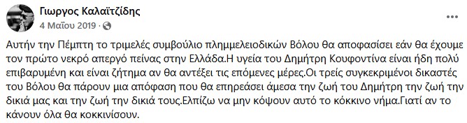 Μια υπενθύμιση. Ενας αντιεξουσιαστής πριν κάποιο καιρό, ο Γιώργος Καλαϊτζίδης κάνει την παρακάτω ανάρτηση απευθυνόμενος στους φίλους του στο f/b.