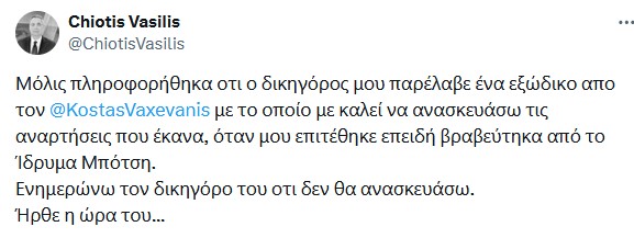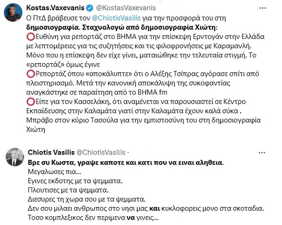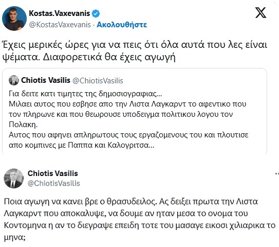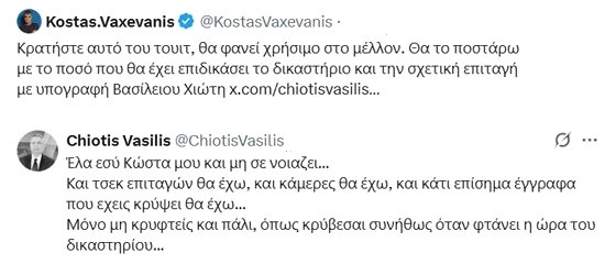 Μια ενδιαφέρουσα αντιπαράθεση μεταξύ Κώστα Βαξεβάνη και Βασίλη Χιώτη η οποία θα έχει συνέχεια στις δικαστικές αίθουσες