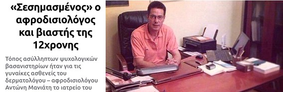 Με κάλεσαν το Σάββατο στην ΓΑΔΑ κατηγορούμενο, ως ηθικό αυτουργό όλων των επιθέσεων που έγιναν στο ιατρείο του καταδικασμένου με τελεσίδικη δικαστική απόφαση κατ’ εξακολούθηση παιδοβιαστή (της 12χρονης από τον Κολωνό) Μανιάτη!