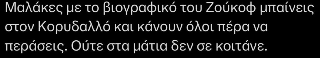 Το αποτέλεσμα μετά την αποκάλυψη του δημοσιογράφου Μάριου Μπίκου για το ποιος πραγματικά κρύβεται πίσω από το ψευδώνυμο GeorghyZhukov ήταν να “πέσει” ο λογαριασμός του στην πλατφόρμα “Χ” και ο Μούγιος να επιδίδεται σε παραληρήματα χωρίς να τολμά να διαψεύσει τις αποκαλύψεις και να στραφεί νομικά σε βάρος του δημοσιογράφου.