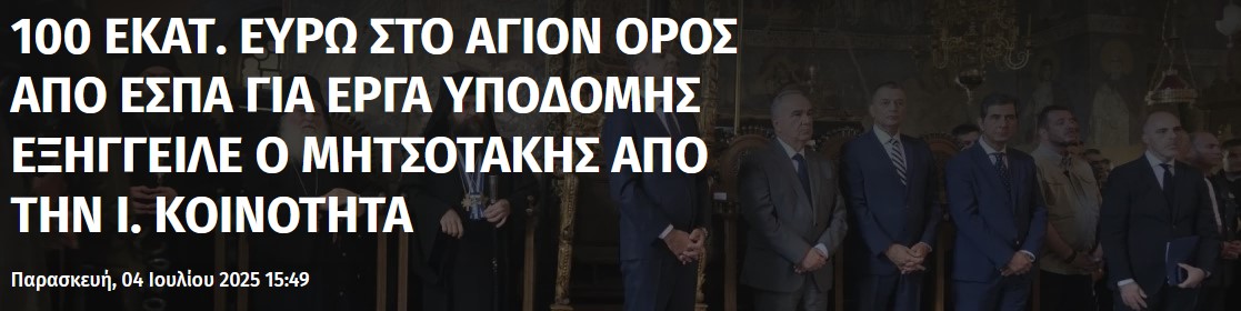 Υπογράμμισε ο Μητσοτάκης ότι η οικονομική στήριξη προς τις μονές δεν είναι μόνο πολιτική αλλά και προσωπική – καθήκον προς την παράδοση και «πνευματικό χρέος». Παραμύθια. Ποια παράδοση και «πνευματικό χρέος». Εξαγορά είναι για να στηρίξουν από δω και πέρα οι καλόγεροι το σημερινό κυβερνητικό κόμμα, και να ξεχάσουν ότι το Άγιο Όρος, διά της Ιεράς Κοινότητος της Ιεράς Κοινωνίας των 20 Ιερών Μονών, έχει εκδηλώσει ξεκάθαρη και επίμονη αντίθεση στον πολιτικό γάμο ομοφυλοφίλων και στην τεκνοθεσία από τέτοια ζευγάρια. Με 100 εκατομμύρια ευρώ πολλά εξαγοράζεις…