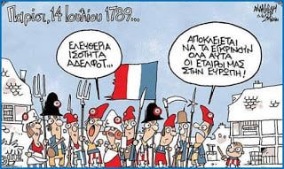 Στις 14 του Ιούλη του 1789 ξέσπασε η Μεγάλη Γαλλική Επανάσταση. Η βασική της νομοτέλεια ήταν η κατάλυση του φεουδαρχικού συστήματος και της ελέω θεού απόλυτης μοναρχίας.