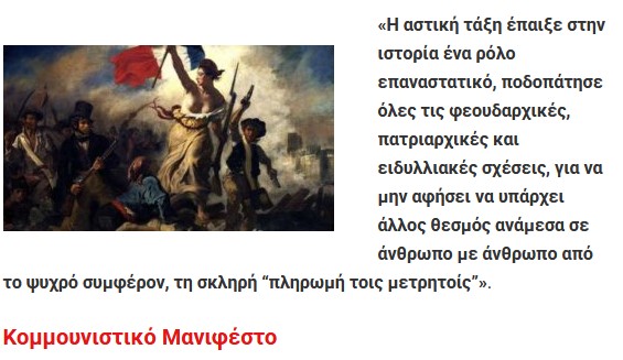 Ετσι, λοιπόν το 1789, άρχισε στην Γαλλία, η διαδικασία για το πέρασμα στο ιστορικό προσκήνιο της αστικής τάξης. Η κυριαρχία μιας νέας τάξης που έφερνε βασικές αλλαγές σε πολλά επίπεδα. Στις παραγωγικές σχέσεις, στο κοινωνικό, πολιτικό και ιδεολογικό εποικοδόμημα, σε όλες τις μορφές και τις δομές της εξουσίας. Για την εδραίωση των λαϊκών ελευθεριών, τη συνταγματική και κοινοβουλευτική νομιμότητα, το δικαίωμα στην εκπαίδευση και τη συμμετοχή όλων στη διοίκηση, χωρίς καταθλιπτικές ιεραρχήσεις. Μια νέα στάση για την ελευθερία του λόγου, για τη θρησκεία, για τους δημοκρατικούς θεσμούς.
