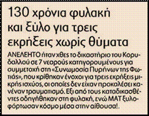 Διαβάστε ακόμα: Εισαι ναζί δολοφόνος; Οι μπάτσοι σου δίνουν κατανόηση και με δικαστική ετυμηγορία μετά 6 χρόνια φυλακή είσαι ελεύθερος – Είσαι αναρχικός που συμμετείχες σε ΑΠΟΠΕΙΡΑ ληστείας τράπεζας; Οι μπάτσοι σε βασανίζουν απάνθρωπα και στους δικαστές δεν αρκεί η 9χρονη φυλάκισή σου.