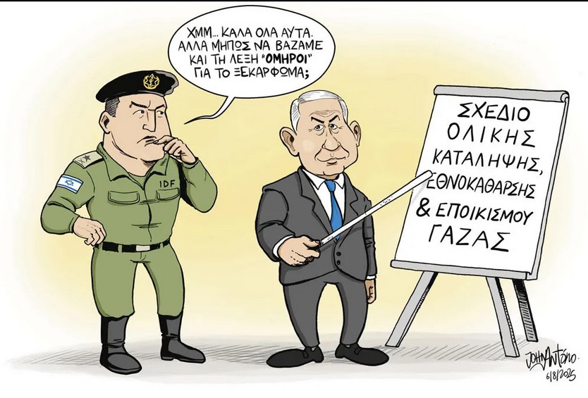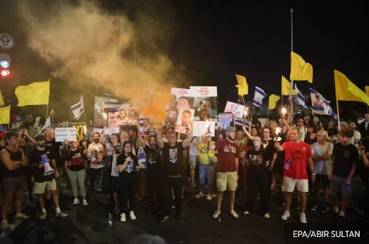 Σύμφωνα με την ΕφΣυν πολλοί Ισραηλινοί πολίτες, ανάμεσά τους και πρώην όμηροι και οι οικογένειές τους, κατέβηκαν στους δρόμους της Ιερουσαλήμ, του Τελ Αβίβ και άλλων πόλεων, διαμαρτυρόμενοι ενάντια στο σχέδιο πλήρους κατοχής της Γάζας που προωθεί η κυβέρνηση Νετανιάχου με υποστήριξη του Συμβουλίου Εθνικής Ασφαλείας.
