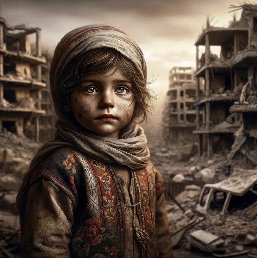 Σήμερα η ίδια λογική –η ασπίδα του ισχυρού πάνω στα σώματα των παιδιών– επεκτάθηκε σε ολόκληρη λωρίδα γης: συνοικίες ισοπεδωμένες, «πόλεις-φαντάσματα», αεροφωτογραφίες που δείχνουν ισοπέδωση σε κλίμακα που δύσκολα χωράει στο μάτι.