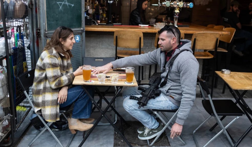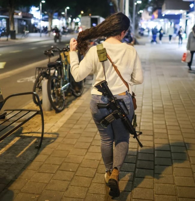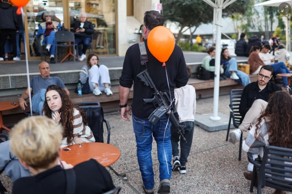 Από την 7η Οκτωβρίου 2023, ο πόλεμος στη Γάζα έχει μετατρέψει πολίτες σε στρατιώτες της καθημερινότητας: άνθρωποι με AR-15 ψωνίζουν στα σούπερ μάρκετ, περιπολούν σε γειτονιές, κοιτάζουν με καχυποψία κάθε «ξένο».
