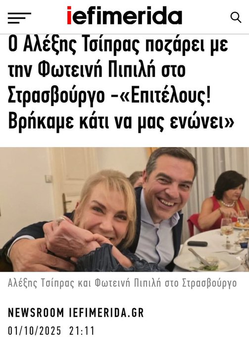 Δεν μπορώ όμως να μην σχολιάσω τη φωτογραφία που ανέβασε στα social media η πρώην βουλευτής της Ν.Δ με τον Τσίπρα, χαμογελαστοί, αγκαλιά ενώ γράφει στη λεζάντα «Επιτέλους! Βρήκαμε κάτι να μας ενώνει. Και μάλιστα σε ξένο “γήπεδο”. Στο Στρασβούργο», προφανώς αναφερόμενη στην αγάπη τους για τον Παναθηναϊκό.