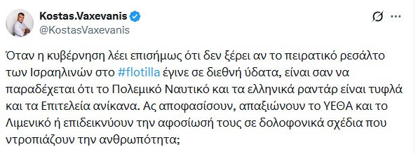 Με απλά λόγια: Έλληνες πολίτες και μία εκλεγμένη αντιπρόσωπος του λαού μας έχουν απαχθεί σε διεθνή ύδατα και η κυβέρνηση ΜΗΤΣΟΤΑΚΗ δεν έχει βγάλει κιχ. Ούτε μια στοιχειώδης αντίδραση, ούτε ένα διάβημα, ούτε μια καταγγελία απέναντι στο φασιστικό κράτος του Ισραήλ.