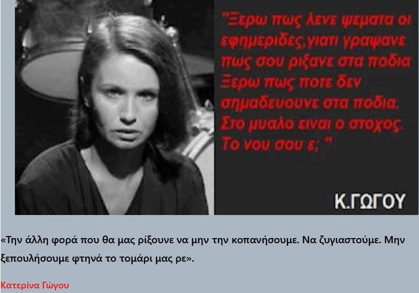 Σαν σήμερα 3 Οκτώβρη του 1993 έδωσε τέλος στην ζωή της με χάπια και αλκοόλ η ηθοποιός, στιχουργός και ποιήτρια Κατερίνα Γώγου.