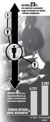 Με αύξηση 23% στις επισυνδέσεις επικοινωνιών – από 16.495 το 2022 σε 20.295 για λόγους «εθνικής ασφάλειας» και από 5.835 σε 5.875 για σοβαρά εγκλήματα – η κυβέρνηση Μητσοτάκη δεν κρύβει πια την παράνοιά της. Συνολικά, οι νόμιμες επισυνδέσεις έφτασαν τις 11.312, αύξηση 12% σε σχέση με το προηγούμενο έτος, ενώ 10.119 άρσεις απορρήτου έγιναν χωρίς καμία αιτιολόγηση!