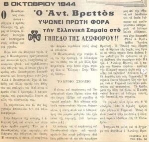 Ο διευθυντής του γηπέδου της Λεωφόρου Αντώνης Βρεττός ύψωσε στον πιο ψηλό ιστό του γηπέδου τη «γαλανόλευκη» και αμέσως οι φυλακισμένοι στα κολαστήρια του Αβέρωφ ξέσπασαν σε φωνές ενθουσιασμού, όσο οι Γερμανοί βρίσκονταν ακόμα στην Αθήνα.