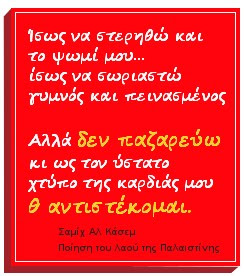 Μόνο με ένα τέτοιο χαρμάνι θα μπορούσες να γράψεις στίχους για την μελωδία που μας δίνει ο ξυπόλυτος πιτσιρικάς που γρατζουνάει την κιθάρα του. Το βλέμμα του, οι νότες του, το φόντο με τα καραβάνια ενός κατατρεγμένου, μαρτυρικού αλλά και ηρωικού λαού, μου έπλεξαν ένα καμβά πάνω στον οποίο παρουσιάστηκαν οι στίχοι του Μίκη: Μικρός λαός και πολεμά / δίχως σπαθιά και βόλια /για όλου του κόσμου το ψωμί, / το φως και το τραγούδι.