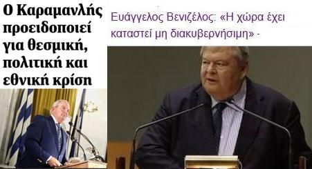 Ο Βενιζέλος, με τη γνωστή του ρητορική δεινότητα, είπε τα πράγματα με το όνομα τους: «Η χώρα έχει καταστεί μη διακυβερνήσιμη. Και στην παρούσα Βουλή, με την παρούσα πλειοψηφία και κυβέρνηση. Έχει καταστεί μη διακυβερνήσιμη επειδή υπάρχει όλο αυτό το αδιέξοδο που καταγράφουν οι δημοσκοπήσεις. Ας πούμε την αλήθεια. Βλέπετε εσείς καμία προοπτική να καταστεί η χώρα διακυβερνήσιμη, να αλλάξει κάτι που το νιώθεις ή το ελπίζεις μέχρι τις επόμενες ή τις επόμενες εκλογές;», αναρωτήθηκε ρητορικά και συμπλήρωσε:
