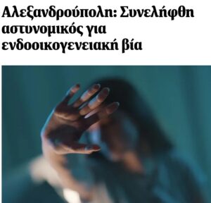 Οταν, λοιπόν, μια γυναίκα αστυνομικός δεν τολμάει να καταγγείλει τον κακοποιητή σύζυγος της -είναι πάρα πολύ σπάνια που το κάνει- σκεφτείτε τι πρόβλημα έχουν οι άλλες γυναίκες που σε αρκετές περιπτώσεις εξαρτώνται οικονομικά απ’ αυτόν.