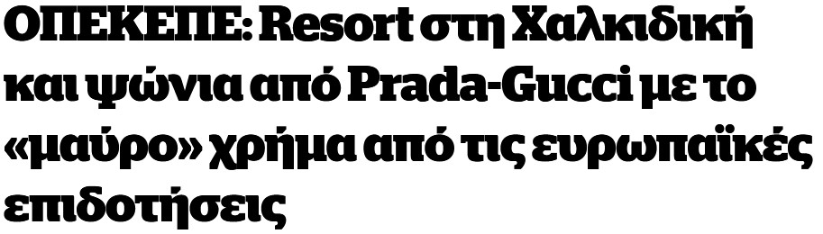 Πριν δημοσιεύσουμε μια δικιά μας καρατσεκαρισμένη πληροφορία να αναφέρουμε ότι σύμφωνα με δημοσίευμα του Documento με ταξίδια αναψυχής σε ακριβό resort της Χαλκιδικής –αλλά και στο εξωτερικό-, όπου η διανυκτέρευση κοστίζει το λιγότερο 500 ευρώ και με ψώνια (shopping therapy) από επώνυμες εταιρείες όπως οι Fendi, Prada και Gucci, «γέμιζε» την καθημερινότητα του ο 38χρονος «αρχηγός» του κυκλώματος που απομυζούσε το ζεστό Ευρωπαϊκό χρήμα που απλόχερα και ανέλεγκτα μοίραζε ο αμαρτωλός ΟΠΕΚΕΠΕ, σύμφωνα με την έρευνα των αρχών.