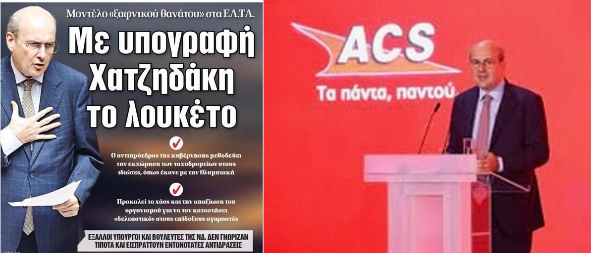 Η εκτίμηση που υπήρχε χτες σε μεγάλη μερίδα ηλεκτρονικών ΜΜΕ σήμερα γίνεται πρωτοσέλιδο στην εφημερίδα “Δημοκρατία”. Οπως σημειώνει το έντυπο του συγκροτήματος Φιλιππάκη ο αντιπρόεδρος της κυβέρνησης μεθοδεύει την εκχώρηση των ταχυδρομείων στους ιδιώτες, όπως έκανε με την Ολυμπιακή, υπογραμμίζοντας ότι το κυβερνητικό στέλεχος προκαλεί το χάος και την απαξίωση του οργανισμού για να τον καταστήσει “δελεαστικό” τους επίδοξους αγοραστές.
