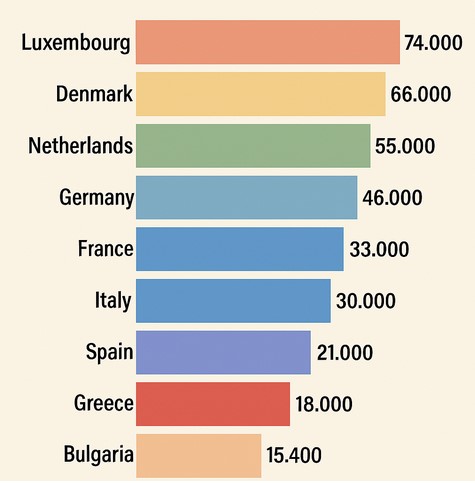 Μόνο η Βουλγαρία καταγράφει χαμηλότερες αποδοχές. Κι αυτό μετά από έξι χρόνια «επενδύσεων», «ανάπτυξης» και «ισχυρής Ελλάδας» που διαλαλεί η κυβέρνηση Μητσοτάκη.