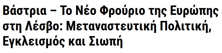 Η δομή αυτή δεν είναι απλώς ένα ακόμα κέντρο φιλοξενίας. Είναι ο νέος μηχανισμός εγκλεισμού μεταναστών και αιτούντων άσυλο – χωρίς ποινική καταδίκη, χωρίς δίκη, χωρίς δημόσιο έλεγχο. Η Βάστρια αντικαθιστά το χάος της Μόριας, όχι με φροντίδα, αλλά με σιωπή, τεχνολογική επιτήρηση και γεωγραφική απομόνωση. Πληροφορίες εδώ
