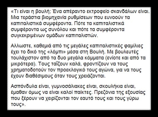 Αυτή η αποστροφή δεν είναι απλώς ρητορική υπερβολή – είναι μια ξεκάθαρη καταγγελία της διαπλοκής, της υποκρισίας και της ηθικής σήψης που πνίγει το κοινοβούλιο. Μια κραυγαλέα καταγγελία του κοινοβουλευτικού κρετινισμού.