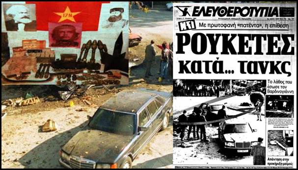 Σαν σήμερα 20/11/1990 αποτυγχάνει η προσπάθεια της 17 Νοέμβρη να εκτελέσει τον Βαρδή Βαρδινογιάννη στην πλατεία Διλβόη της Νέας Ερυθραία.